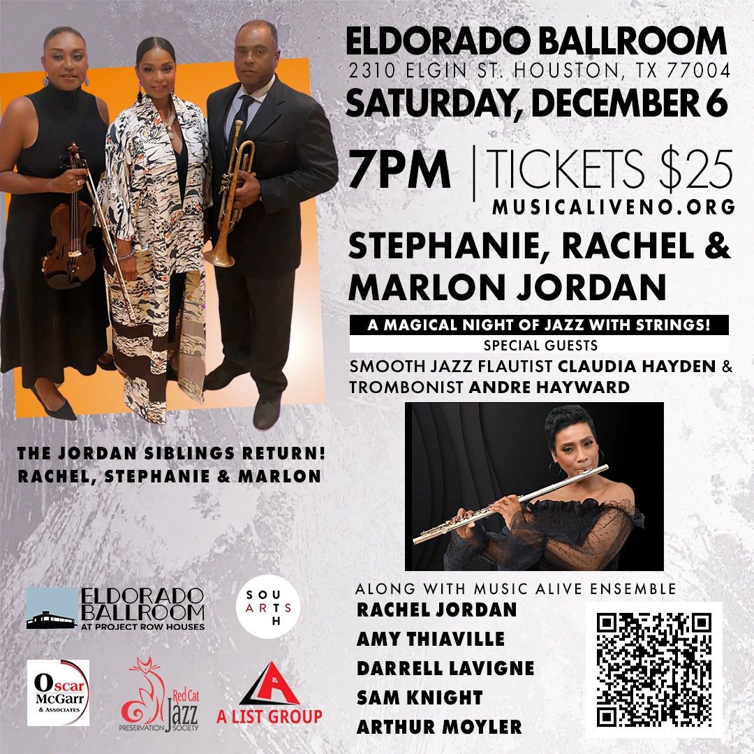 Don't miss Stephanie, Rachel & Marlon Jordan and many more at the Eldorado Ballroom. Powered by Red Cat Jazz Cafe Houston